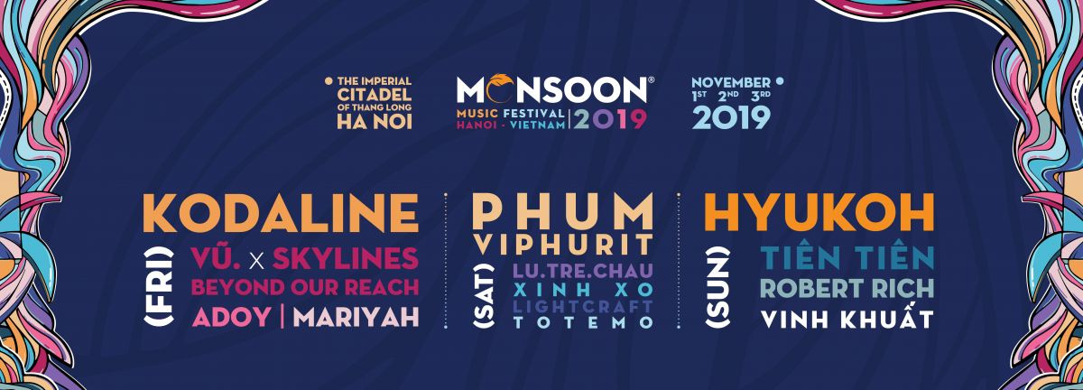 Monsoon Music Festival 2019 quy tụ nhiều ca sĩ như Tiên Tiên, Vũ,… và nhiều bạn nhạc nổi tiếng khác khác. Hiện đang có ưu đãi quà tặng từ đối tác chiến lược bia 333 x Monsoon :